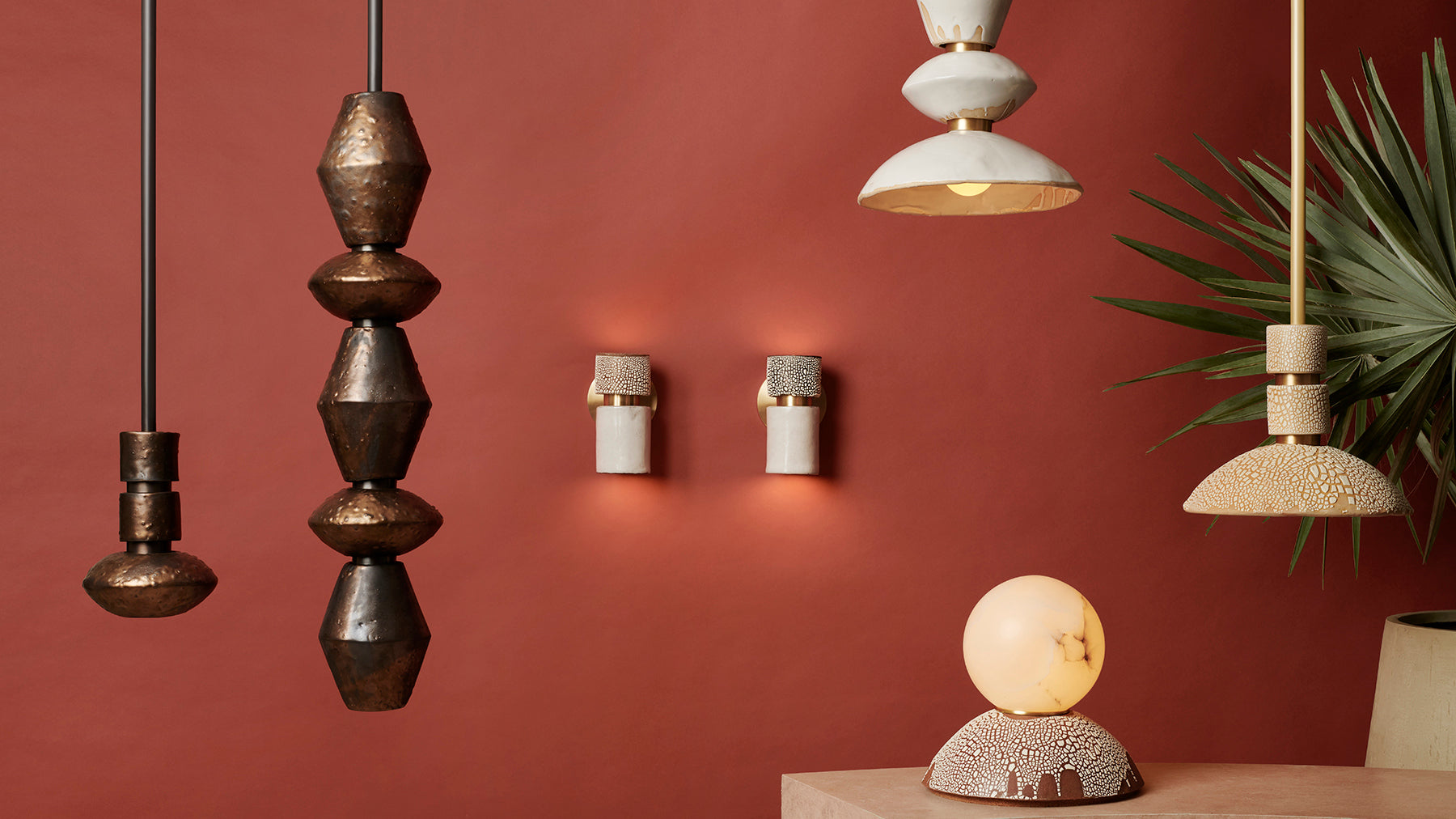 Inspired by Brancusi’s Endless Columns, and their iconic architectural presence. Hand-built ceramic forms with earthen glazes are punctuated by solid brass. The collection balances elemental shapes with crisp metalwork.