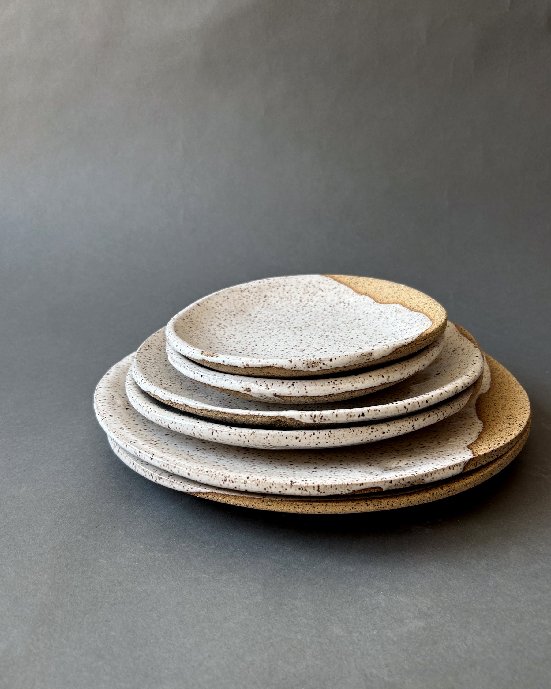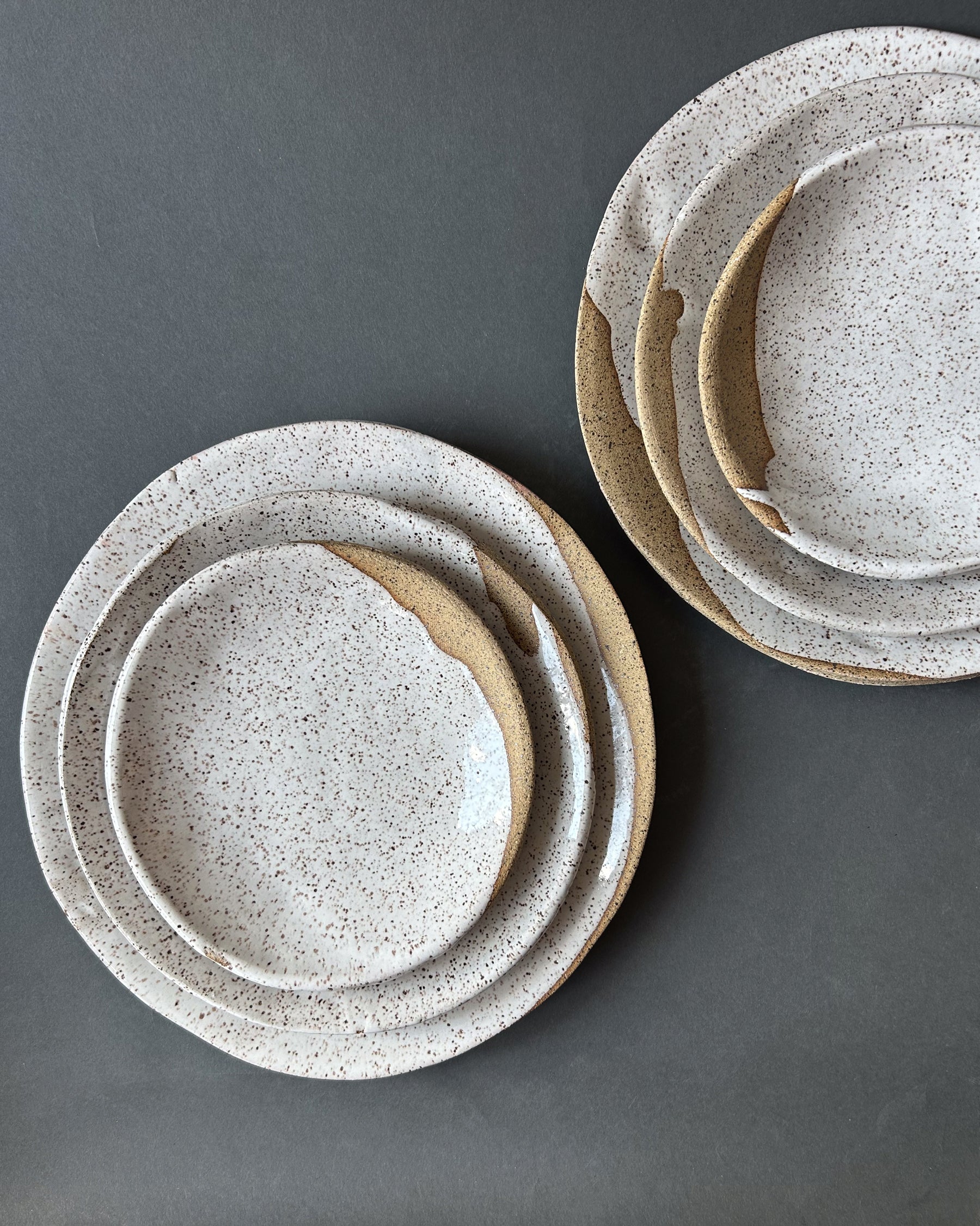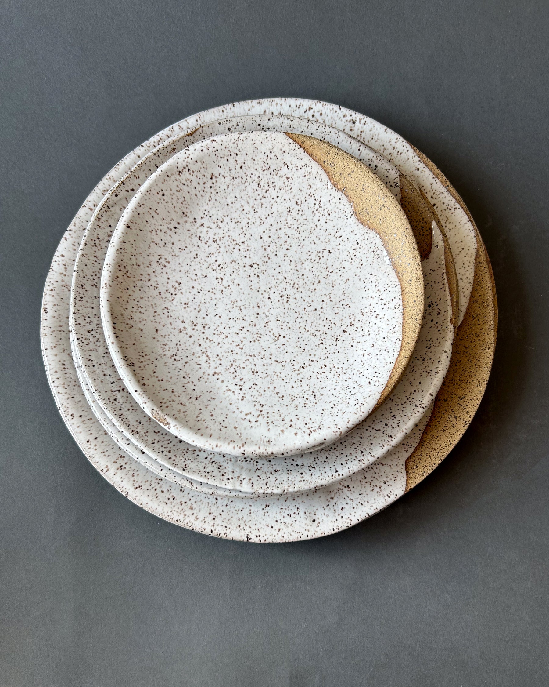 Glossy white glaze on speckled clay. Made by hand in our Brooklyn Studio.