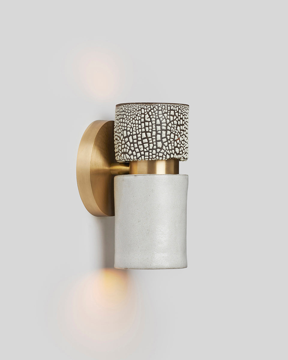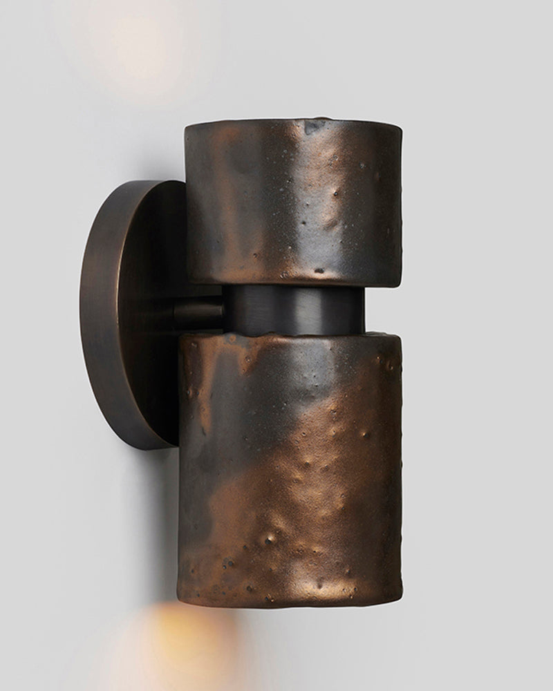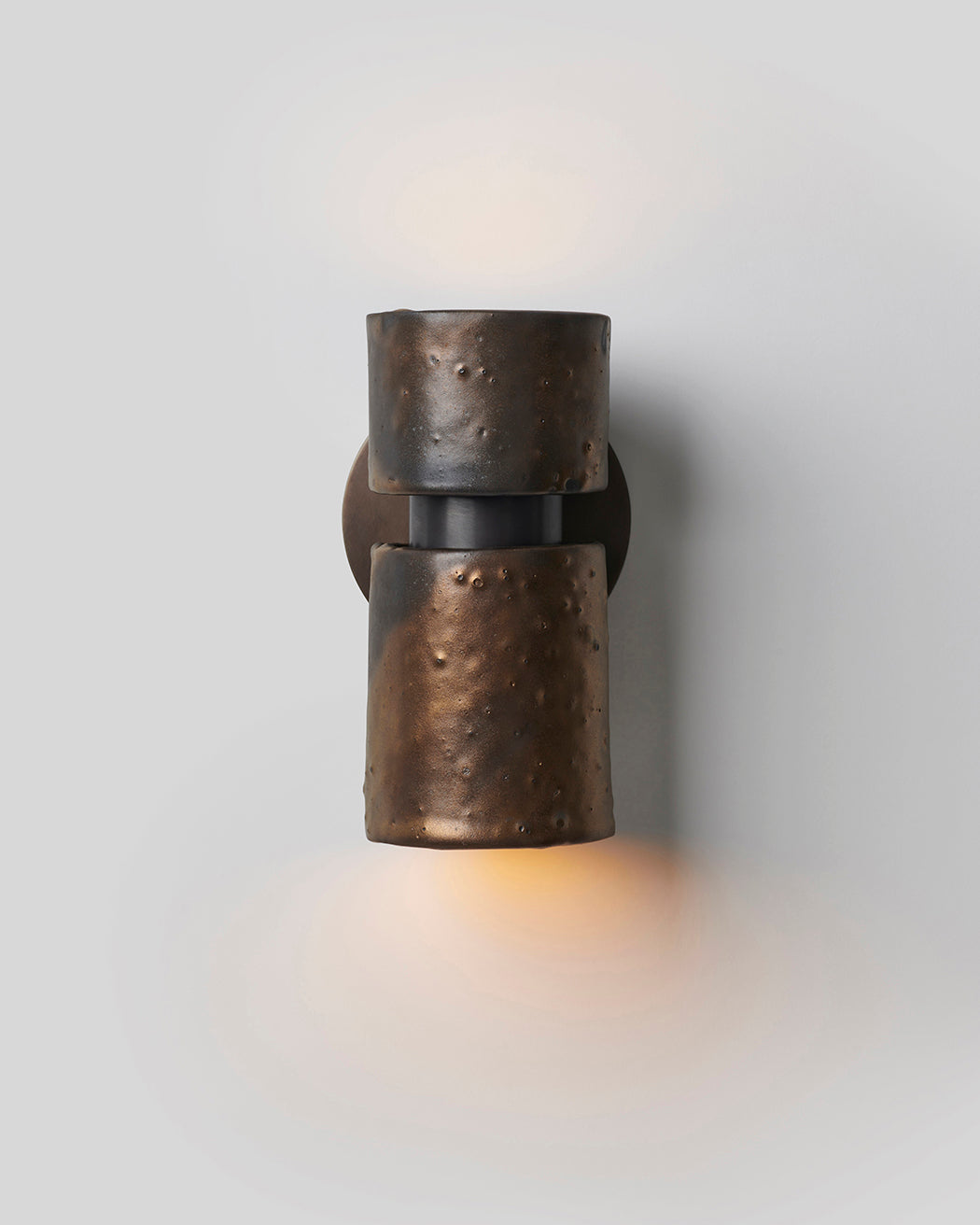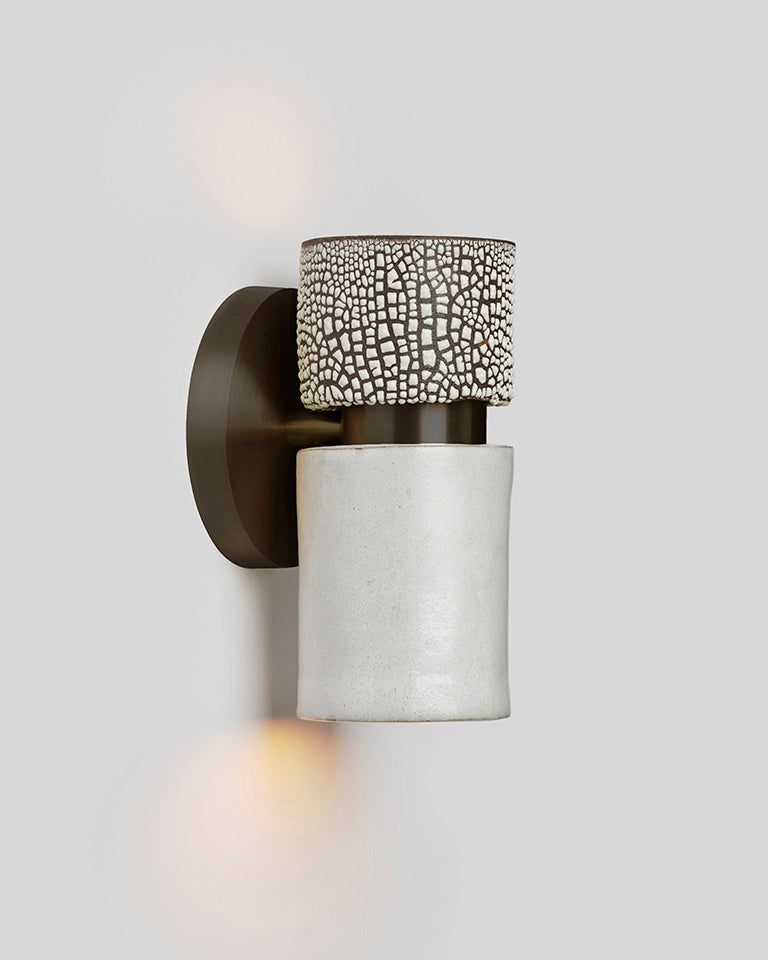 Hand-built ceramic elements with oil rubbed bronze or brushed brass.