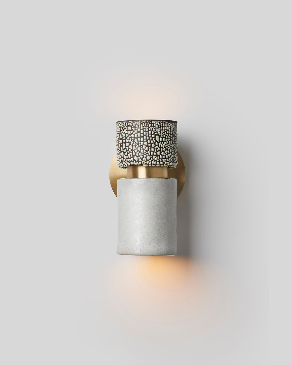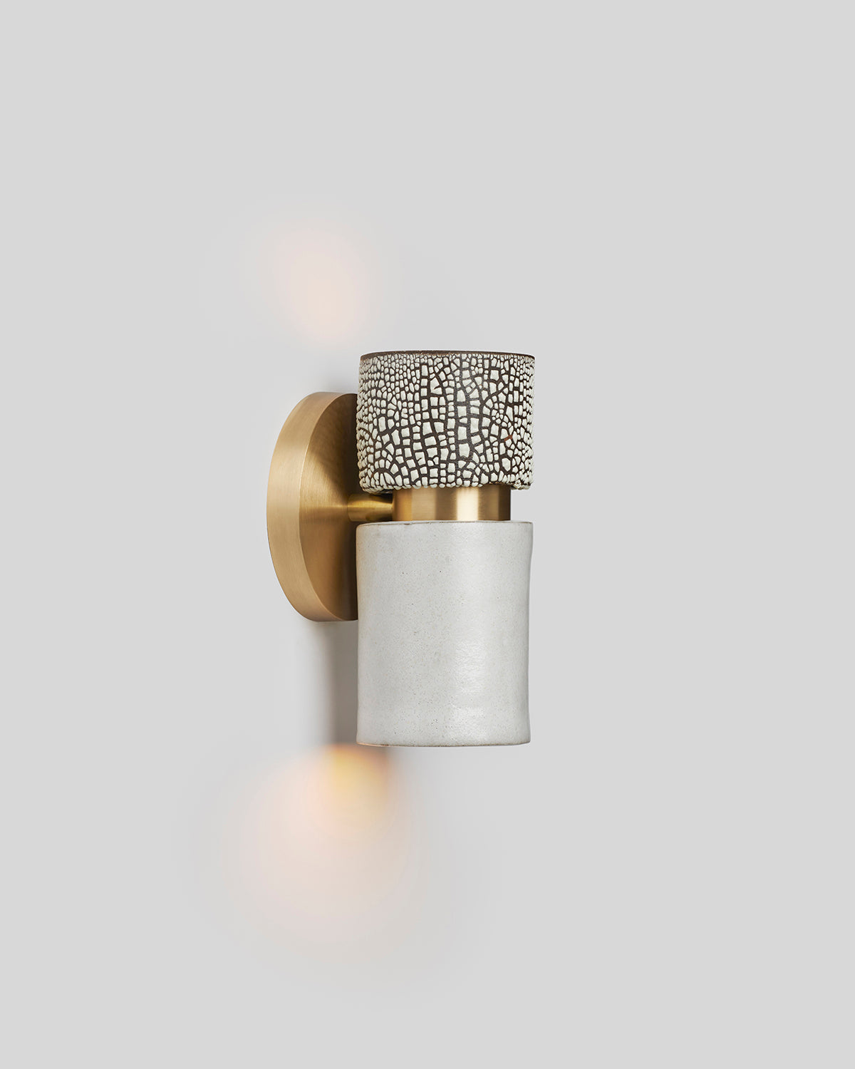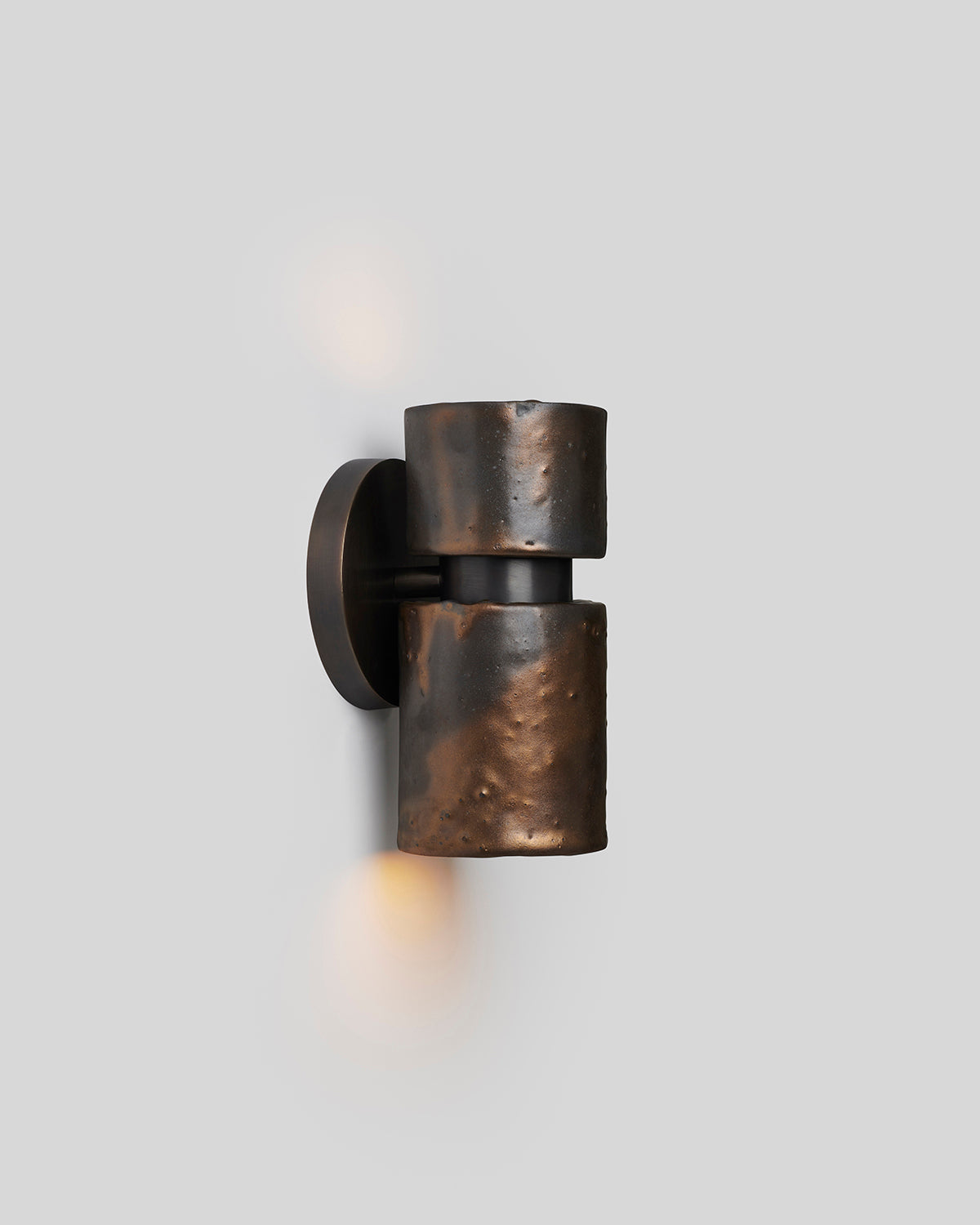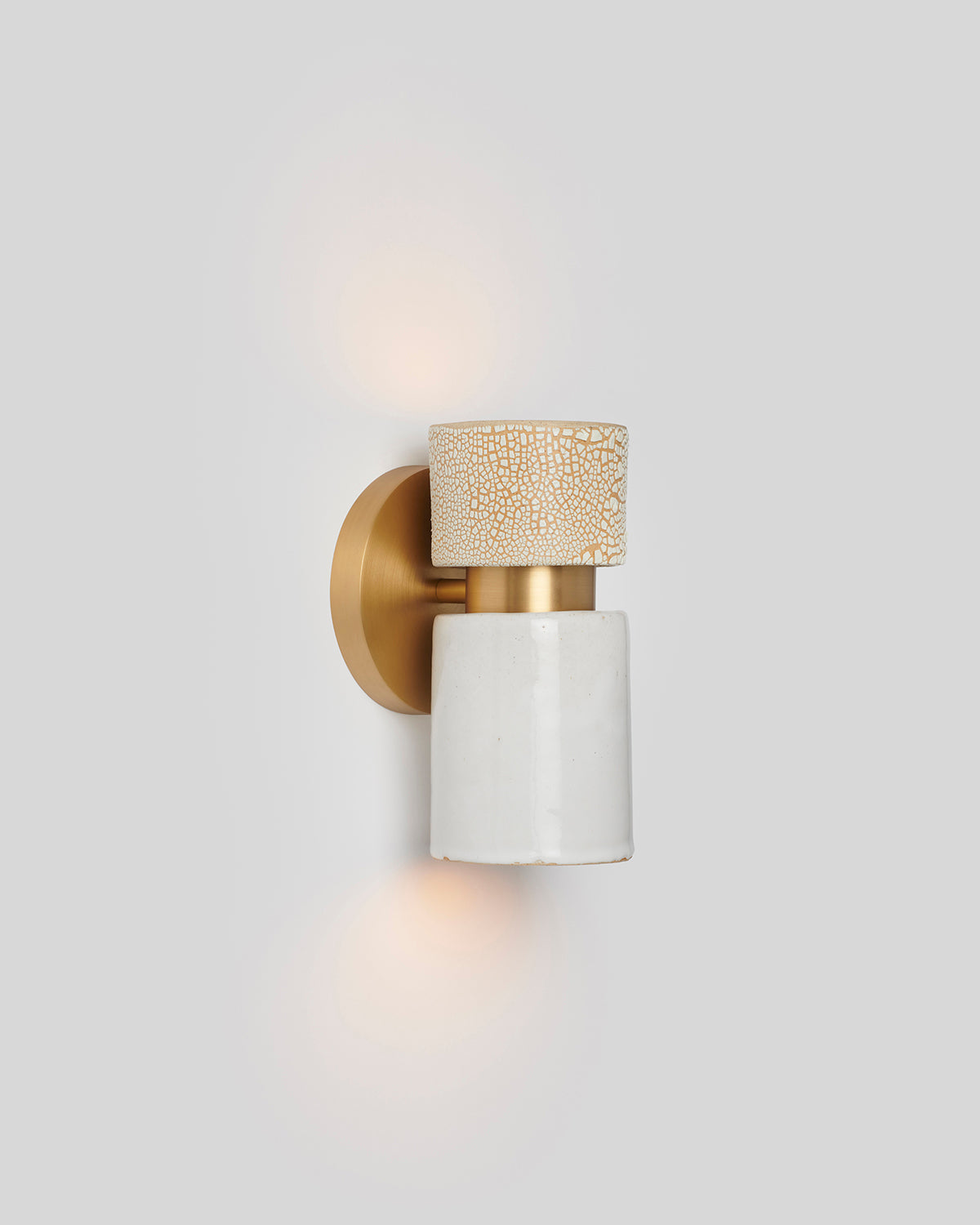 Hand-built ceramic elements with oil rubbed bronze or brushed brass.