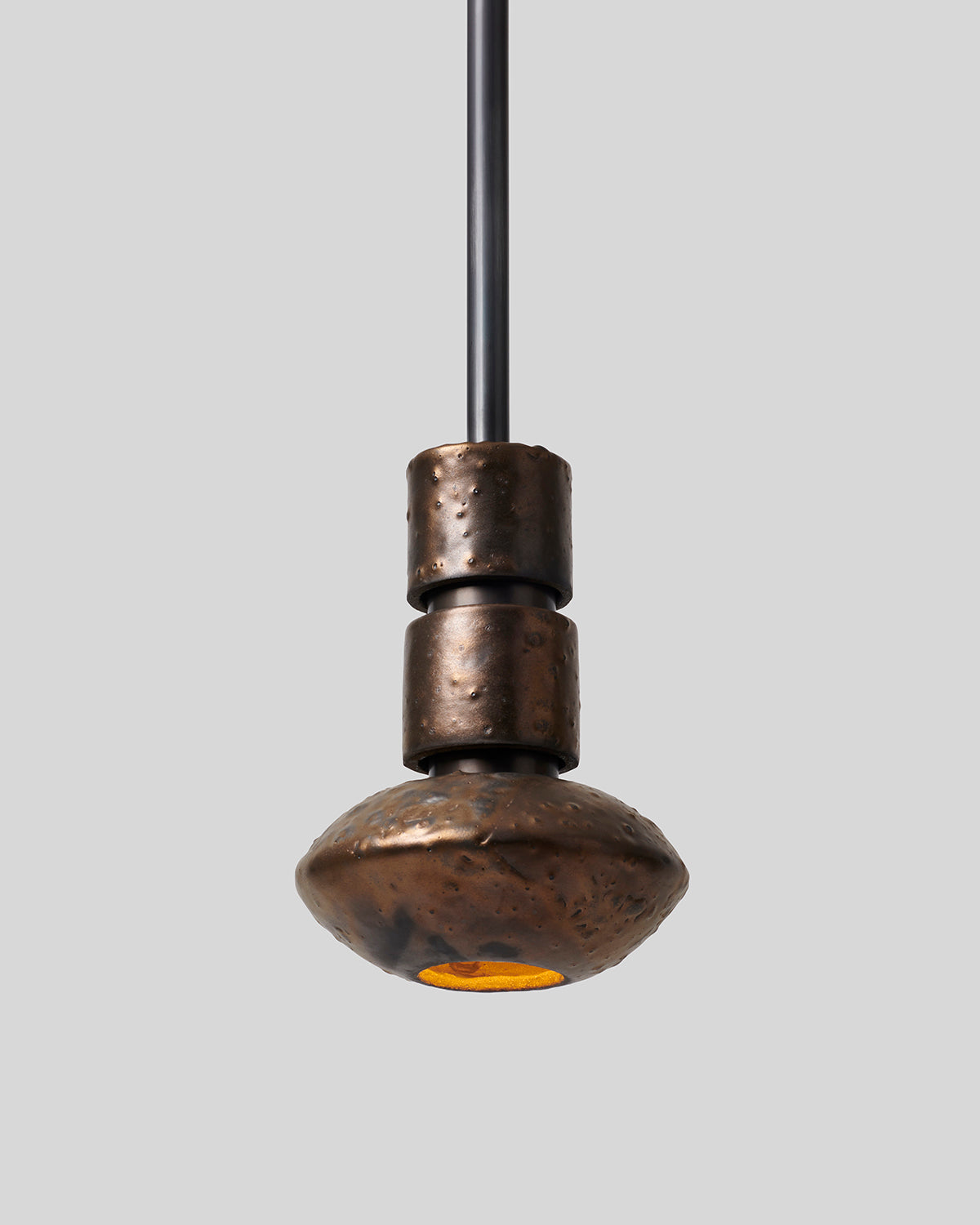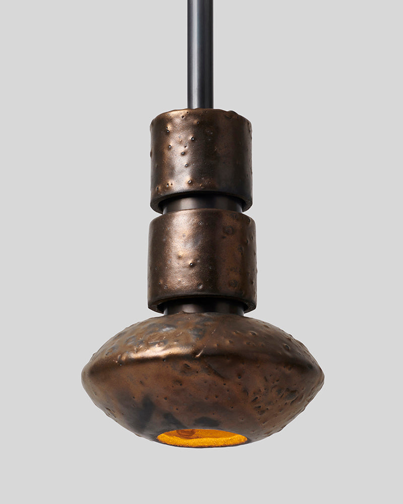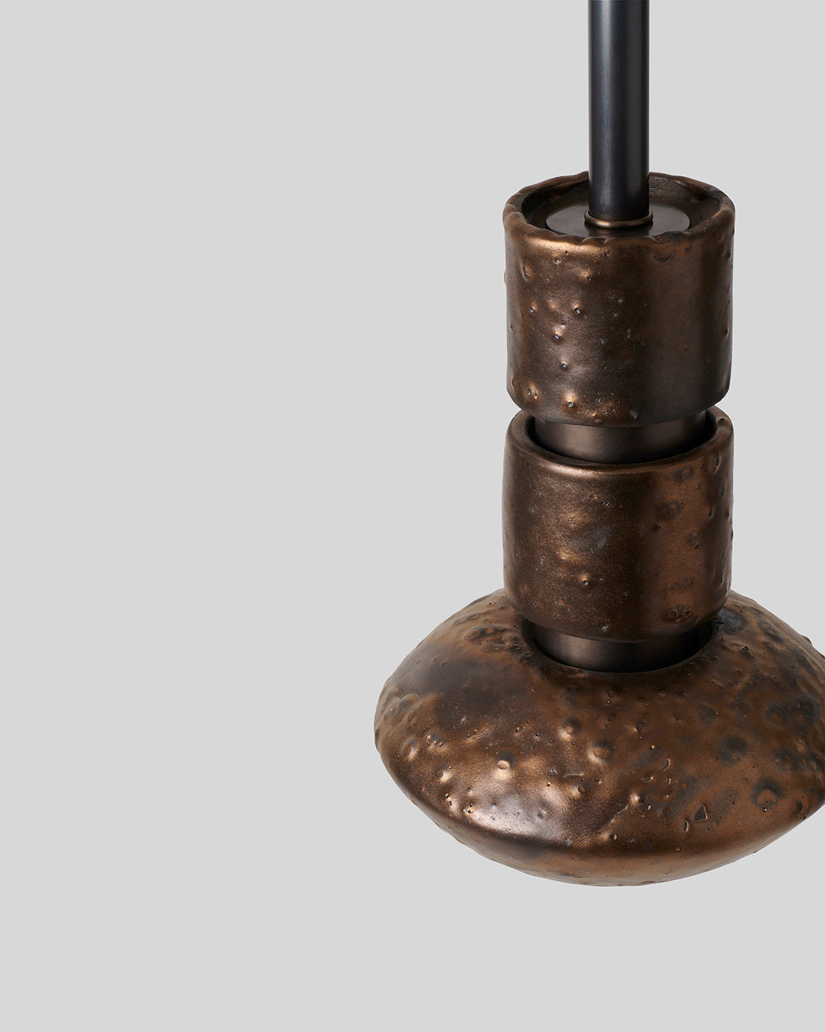 Hand-built ceramic elements with either brushed brass or oil rubbed bronze.