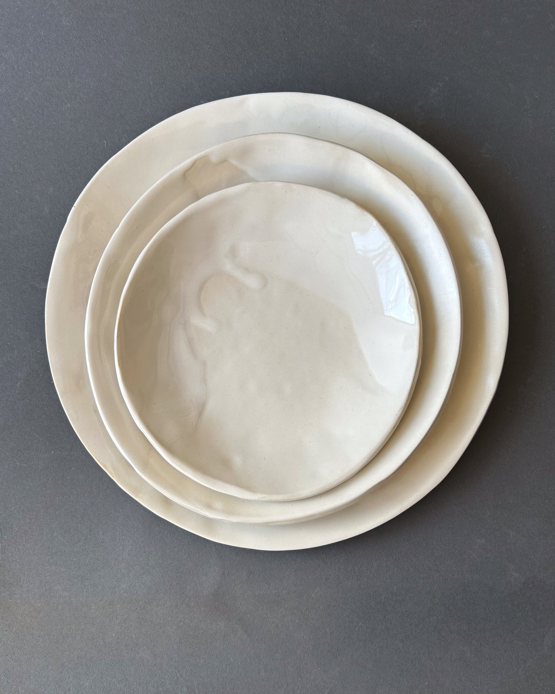 Layers of matte and glossy white glaze on porcelain; each one-of-a-kind. Made by hand in our Brooklyn Studio.