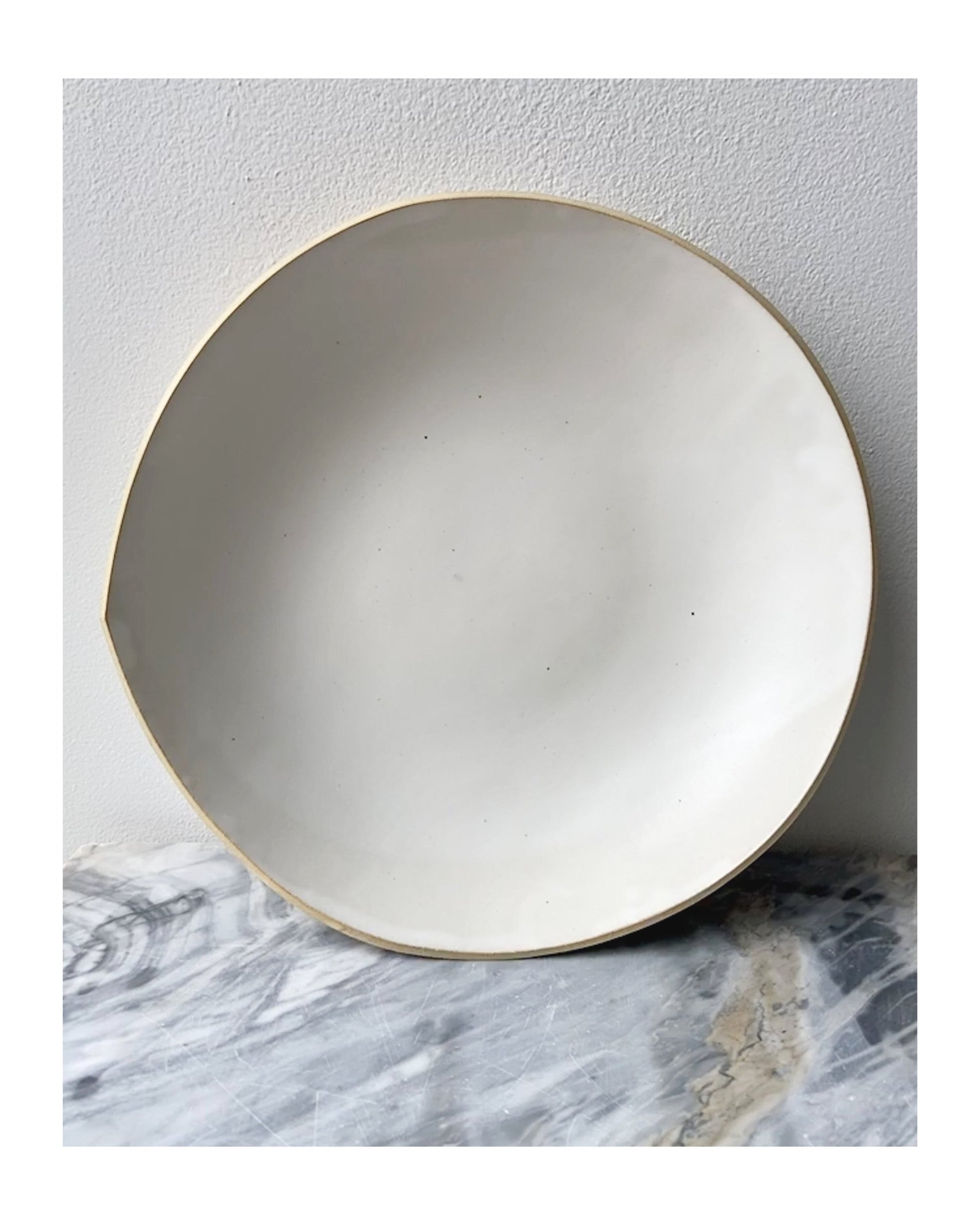 Sand-toned stoneware serving bowl. Made in our Brooklyn studio. Wide and low and extremely versatile to hold fruit or serve a big salad.