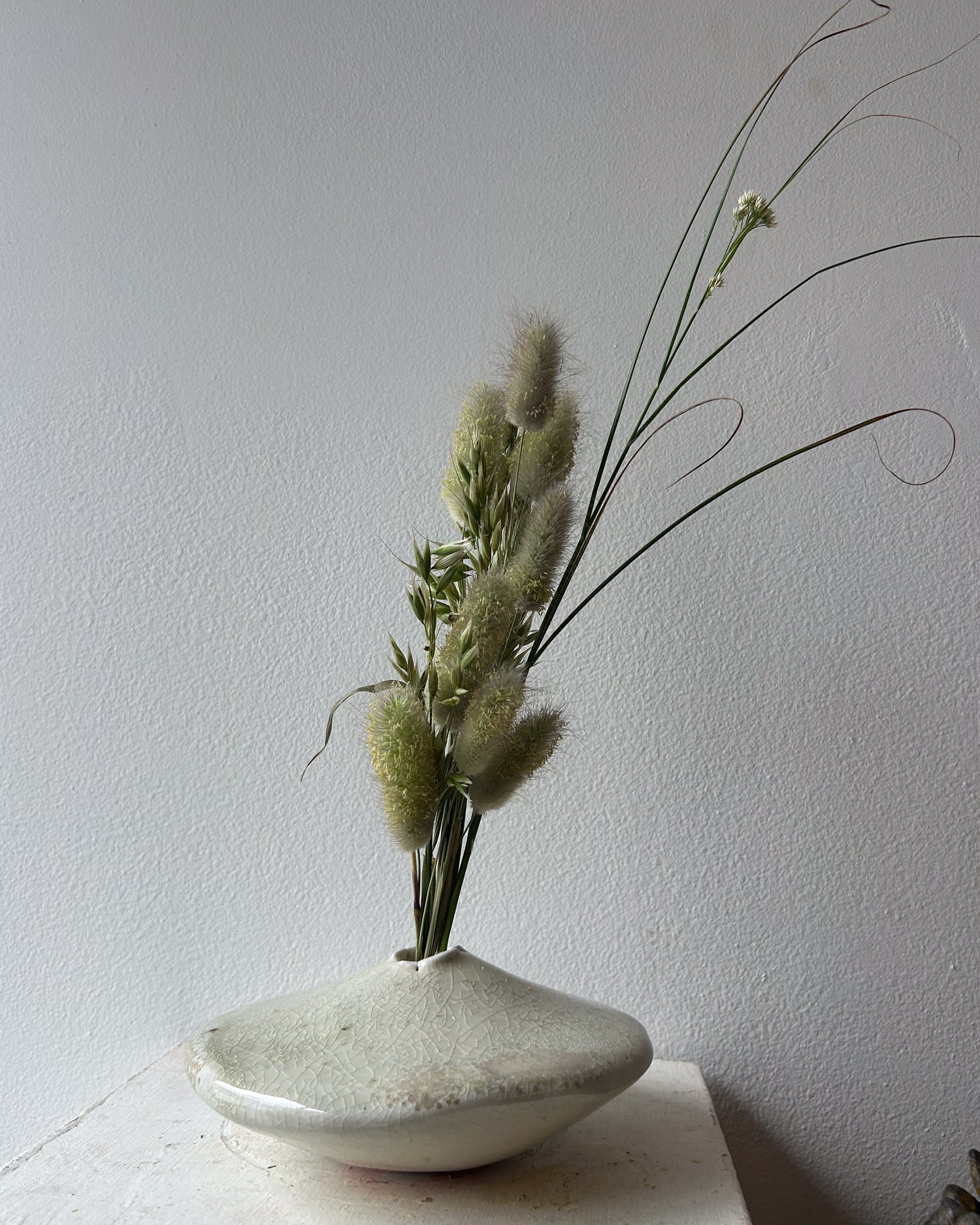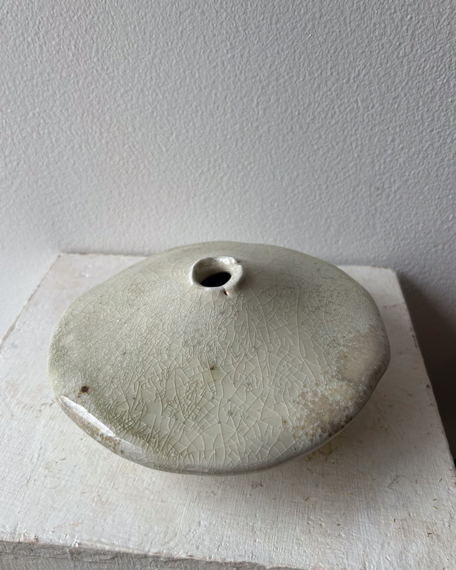 Low porcelain vase, hand-built in our Brooklyn Studio, then fired in a traditional Anagama/Noborigama kiln in upstate New York.